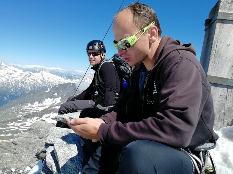 U kříže si dal čokošku a Michalovy párky s houskou a když jsme sestoupili pár metrů, byl už zase jako rybička. Inu, převýšení z Prahy na Mösler za pár hodin spojené s nevyspáním z nočního přejezdu s nejedním zamává.