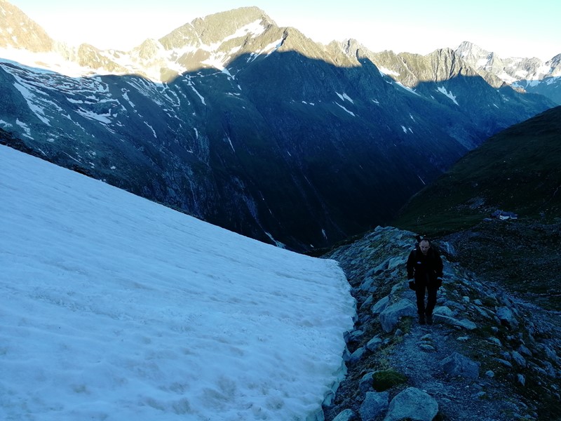 Kousek pod skalní ostruhou nás vyhnala bouřka a prostor na reparát druhý den už nebyl. Vydali jsme se tam proto pak znovu. A ani to nedopadlo. Počasí bylo opět na prdlačku, ale se vzdát nechtěli. Naše odhodlání nakonec zlomila sympatická chatárka, která pronesla něco v tom smyslu, že nechápe, proč tolik Čechů míří zrovna na Mösler. Takovej ošklivej kopec doslova řekla, ať že prý se na to vydlábnem. Moc sněhu, mraky se honěj, bouřka hrozí. Tak jsme ji poslechli.