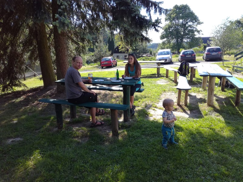 Tak jsme s úspěchem vyrazili od skály na oběd na Hrubou skálu, ale protože jsme se chtěli pořádně najíst, museli jsme nakonec sednout do auta a popojet do Klokočských skal, kde jsme našli útulnou restauraci. Naobědvali jsme se a vydali se na průzkum.